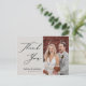 Carte postale de remerciement de mariage minimaliste de photo de script élégant moderne gris. Exprimez votre gratitude à vos amis et à votre famille qui ont rendu votre mariage encore plus spécial avec cette belle carte de remerciement de photo de mariage. Tous les textes sont pré-arrangés pour que vous puissiez les personnaliser facilement et rapidement avec vos propres mots.