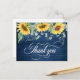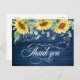 Carte de remerciement avec tournesol élégant et verdure florale.