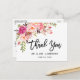 Carte Postale Remerciement de mariage floral rose écriture pince