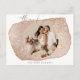 Conception abstraite comprenant une photo sur un éclaboussure d'aquarelle remplie de faux paillettins rose et or avec un script de remerciement calligraphié. Carte double face avec un message de gratitude au verso. Personnalisez facilement avec votre image et les informations de votre choix.