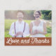 Donnez à vos cartes de remerciement une touche amusante et nostalgique avec cette carte de remerciement de mariage horizontale personnalisée avec photo. Conçue avec une typographie audacieuse et rétro "amour et remerciements" sur votre photo de mariage préférée, cette carte combine le charme vintage avec une personnalisation moderne.
