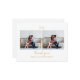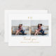 Carte de remerciement de mariage moderne minimaliste or et blanc avec deux photos, avec une élégante lettre manuscrite et un monogramme simple avec un message de remerciement personnalisé et l'adresse de retour au dos de cette carte de couleur blanche et or élégante.