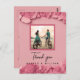 Carton de remerciement de mariage inspiré de Barbiecore avec des fleurs en papier découpé en 3D simulé monochrome rose avec photo.