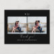 Cette moderne carte de remerciement de mariage minimaliste noir et blanc avec deux photos présente une élégante écriture manuscrite et un simple monogramme avec un message de remerciement personnalisé et l'adresse de retour au dos de la carte chic.