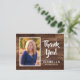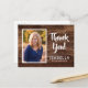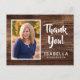 Cette carte de remerciement de remise de diplôme présente un fond en bois rustique tendance. Le recto offre un cadre photo vertical et le nom du diplômé. Le verso offre un texte personnalisé pour votre adresse de retour.