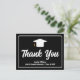 Cette carte de remerciement de remise de diplôme personnalisée en noir et blanc présente un merci manuscrit élégant au-dessus du nom de votre lycée ou université pour la promotion 2025. Personnalisez avec votre nom sous la casquette de diplômé pour des cartes de remerciement personnalisées pour les diplômés modernes.