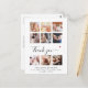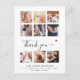 Une belle carte postale moderne de type "Insta" avec une grille de photos carrées en collage, parfaite pour remercier vos invités de la baby shower pour les cadeaux, l'amour et le soutien reçus. Le design moderne présente un collage de neuf photos carrées personnalisables. Entre les photos, il y a un message "merci" dans un script chic et fantaisiste et un petit cœur rouge, et le nom et les informations sur votre bébé, en lettrage élégant, sont en bas. Au dos, il y a votre message de remerciement personnalisable et l'adresse de retour. Grâce au bouton "personnalisation", vous pouvez remplacer les photos et modifier le texte.