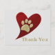 Carte Postale Remerciement Empreinte de Patte Dorée Rouge Cœur A