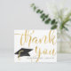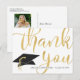 Carte de remerciement personnalisée pour photo de remise de diplôme moderne avec le nom et l'année de promotion de votre diplômé au recto, avec un motif de capuchon de graduation et un "MERCI" métallisé doré en typographie calligraphique chic. Le verso présente une photo du diplômé et offre la possibilité de pré-imprimer votre message de remerciement ou d'opter pour la suppression du texte exemple afin de laisser la zone vierge pour des notes manuscrites de remerciement personnelles. ASSISTANCE : Pour obtenir de l'aide concernant la modification ou la personnalisation du design, le changement de couleur, le transfert du design sur un autre produit ou si vous souhaitez des articles coordonnés, contactez le concepteur AVANT DE COMMANDER via l'onglet MESSAGE de discussion Zazzle ci-dessous ou par courriel à makeitaboutyoustore@gmail.com.