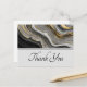 Carte de remerciement avec un design abstrait avec un motif de minéral de géode d'agate. L'or, le gris, le blanc et le noir tourbillonnent ensemble formant des vagues de couleur élégantes. Parfait pour transmettre une atmosphère de classe et d'élégance.