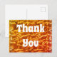 Dites merci avec cette élégante carte postale orange vif. Cette carte postale peu coûteuse présente des tons jaunes et orange brillants dans un motif abstrait qui ressemble à du métal liquide qui se froisse et se plie en se solidifiant. Personnalisez rapidement et facilement les mots "merci" qui apparaissent au centre de ce mot de remerciement vibrant.