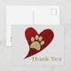 Carte Postale Remerciement Paw Print Or Cœur Rouge Appreciation