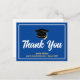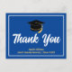 Cette carte de remerciement personnalisée moderne de remise des diplômes en bleu et blanc présente un remerciement manuscrit élégant au-dessus du nom de votre lycée ou université pour la promotion 2025. Personnalisez avec votre nom sous la toque noire de diplômé pour de superbes cartes de remerciement de diplômé personnalisées.