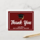 Cette carte de remerciement personnalisée moderne bordeaux et blanc pour la remise des diplômes présente un remerciement manuscrit élégant au-dessus du nom de votre lycée ou université pour la promotion 2025. Personnalisez avec votre nom sous la toque noire pour de superbes cartes de remerciement pour diplômés.