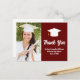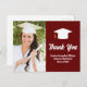 Cette carte de remerciement personnalisée moderne pour la remise de diplôme de fin d'études supérieures en bordeaux et blanc présente une typographie tendance au-dessus du nom de votre université pour la promotion 2025. Personnalisez-la avec la photo de votre diplômé à côté de l'élégant texte manuscrit.