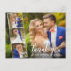 Carte de remerciement pour collage de 4 photos de mariage à la calligraphie élégante et moderne