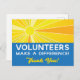 Carte postale de remerciement pour les bénévoles avec "Les bénévoles font la différence" et un design de soleil géométrique. Montrez votre gratitude aux bénévoles de votre organisation.