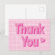 Dites Merci avec cette adorable carte postale de style rétro rose. Un fond rose de style rétro cool avec un motif de grille blanche par-dessus. Au centre, les mots Merci sont écrits en lettres roses avec une ombre portée rose vif pour le faire ressortir. Un cœur d'amour rose mignon est à droite du mot vous.