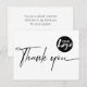 Carte postale moderne, simple et minimaliste de remerciement pour entreprise. Le design présente votre logo et le script ''merci'' dans une typographie tendance sur fond blanc. Personnalisez davantage avec votre message, le nom de votre entreprise et un code QR au verso.