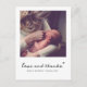 Ce modèle de carte de remerciement pour baby shower avec photo carrée chic et simple présente un design moderne et épuré. Un script moderne en noir pour 'amour et remerciements' sur le devant et une typographie simple pour les autres textes personnalisés, y compris les détails du bébé et votre message personnalisé au verso. Cette carte postale de remerciement minimaliste moderne est parfaite pour les baby showers, les annonces de nouveau-né et bien plus encore !