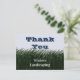 Exprimez votre appréciation à vos clients fidèles avec cette carte postale promotionnelle peu coûteuse. La carte postale présente de l'herbe vert foncé peinte et un "ciel" bleu clair. "Merci" apparaît derrière des brins d'herbe. Le nom de votre entreprise apparaît dans une police blanche professionnelle sur le paysage vert. Le dos de la carte permet beaucoup de place pour des mots de remerciement supplémentaires qui peuvent être personnalisés pour répondre aux besoins de votre entreprise.