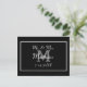 Cartes de remerciement de mariage élégantes et simples avec monogramme de M. et Mme en noir et blanc. Remplissez votre nom, date de mariage, adresse de retour et détails de la lettre.