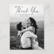 Carte de remerciement de mariage avec photo et écriture moderne. Les couleurs peuvent être modifiées. Le verso comprend un message de remerciement générique que vous pouvez personnaliser pour chaque invité ou supprimer complètement si vous préférez écrire votre remerciement à la main.