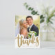 Un grand "Merci" manuscrit sur un nuage blanc qui chevauche votre photo de mariage. L'ombre portée sur le nuage lui donne un aspect tridimensionnel (même s'il est plat). Personnalisez en ajoutant vos détails, message de remerciement et photo frontale verticale. Utilisez le message exemple ou écrivez votre propre message. Cette carte de remerciement audacieuse et élégante est parfaite pour les mariages, les remises de diplômes et les événements similaires.