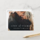Ce modèle de carte postale de remerciement de mariage personnalisé avec photo, simplement chic, présente un design élégant, minimaliste et moderne. Le recto présente votre photo préférée, les prénoms et un message "AMOUR et REMERCIEMENTS" transmis avec un mélange saisissant de deux polices distinctes, avec "et" dans un script léger et fluide entre les deux autres mots, qui sont en majuscules avec un aspect formel gras et net. La partie "AMOUR et REMERCIEMENTS" du design ne peut pas être modifiée. Lorsque vous modifiez le recto pour afficher vos propres noms, vous pouvez modifier le format pour afficher vos prénoms avec votre nom de famille, ou "M. et Mme......" ou ce qui convient à votre style.