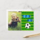 Remerciez votre famille et vos amis avec cette carte de remerciement simple et personnalisable, cette carte est inspirée par la joie et l'amour, il y a une combinaison de bleu et de vert, le design présente un ballon de football sur un terrain de football pour donner une sensation amusante, ludique et amicale. Cliquez sur "personnaliser" pour ajouter votre photo préférée.