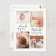 Cette carte postale moderne et intemporelle de remerciement avec photo est idéale pour quiconque souhaite remercier les invités de leur baby shower pour les cadeaux, l'amour et le soutien qu'ils ont reçus et présenter le nouveau membre de leur famille. Le design simple et élégant a un style minimaliste et comprend quatre photos personnalisables placées dans le collage, une typographie simple et élégante pour vos informations, et un script manuscrit pour un en-tête de « remerciement ». Il y a également un petit cœur qui flotte autour. Au verso, il y a un message de remerciement personnalisable avec vos noms. Utilisez le bouton "personnaliser" pour remplacer les photos et modifier le texte.