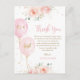 Personnalisez cette carte de remerciement pour Baby Shower avec des fleurs roses et des ballons avec les détails de votre baby shower facilement et rapidement, il suffit d'appuyer sur le bouton personnaliser pour réorganiser et formater le style et l'emplacement du texte. Avec de belles roses roses aquarelle, un feuillage vert et or délicat et des ballons roses aquarelle. Articles assortis disponibles en magasin !