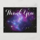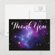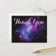 Une jolie photo d'espace d'amas de galaxies violet et bleu avec un design de remerciement de mariage en calligraphie contemporaine blanche. Créez vos propres cartes postales personnalisées.