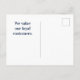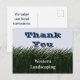 Exprimez votre gratitude à vos clients fidèles avec cette carte postale promotionnelle peu coûteuse. La carte postale présente de l'herbe peinte de couleur vert foncé et un "ciel" bleu clair. "Merci" apparaît derrière les brins d'herbe. Le nom de votre entreprise apparaît en caractères blancs professionnels sur le fond de verdure. Le verso de la carte permet suffisamment d'espace pour des mots de gratitude supplémentaires qui peuvent être personnalisés pour répondre aux besoins de votre entreprise.