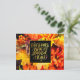 La carte de vœux de Thanksgiving représente une belle photographie de la nature avec des fleurs d'automne orange et jaune, des feuilles, des baies et une citrouille. Elle comporte une citation encourageante et inspirante, « Remerciez avec un cœur reconnaissant. » _