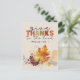 La carte postale de fête de Thanksgiving représente un art simple d'aquarelle d'automne avec un design de feuilles dorées d'automne. Il présente une citation d'inspiration Écriture, "Donnez grâce au Seigneur", tirée d'une partie de la Bible Verse Psaume 106:1. La salutation, la prière peut être customisée ou supprimée pour un message manuscrit._