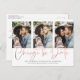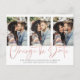 Remise de Mariage d'or Rose manuscrit moderne avec typographie de feuille d'or faux rose de "Change the Date" sur un arrière - plan blanc chic. Beaucoup d'espace pour 3 photos. Si vous avez dû changer vos plans de mariage, c'est une excellente façon de le faire savoir à votre invité. Veuillez nous contacter à cedarandstring@gmail.com si vous avez besoin d'aide ou de renseignements sur les produits correspondants.