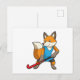 Carte Postale Renard au hockey avec une batte de hockey