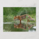 Renard - belle photo couleur nature d'un renard sauvage et réflexion que le renard est en train de pénétrer dans un étang entouré de verdure.