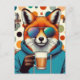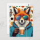 Carte Postale Renard rouge dans les lunettes de soleil avec café