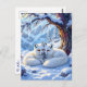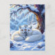 Un renard d'hiver sucré thème Noël ou Bonne Fête carte postale. Un doux exemple de deux renards blancs, d'une maman et d'un bébé se tenant sous un arbre dans la neige. Sur le dos, vous pouvez ajouter votre propre message personnalisé.