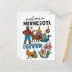 Cette carte postale du Minnesota est le souvenir de voyage idéal pour votre voyage dans les North Woods, un memento amusant d'un voyage à Minneapolis ou St. Paul, ou un cadeau de voyage attentionné pour les amoureux de la nature, les campeurs et tous ceux qui chérissent les aventures en plein air et la culture unique du Minnesota. Son design joyeux le rend idéal pour partager votre amour pour cet état incroyable