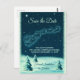 Une carte postale de sauvegarde de la fête de Noël avec une illustration vintage de Santa dans son traîneau tiré par ses rennes. De petites étoiles parsèment le ciel nocturne. Pins enneigés au sol. Rétro vintage.