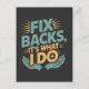 Ce design chiropratique audacieux comprend l’expression "Réparez les sacs, c’est ce que je fais" avec un style rétro. Un choix parfait pour les chiropraticiens, les étudiants en chiropratique et les défenseurs de la santé de la colonne vertébrale qui s'enorgueillissent de la guérison et du bien-être grâce aux soins chiropratiques.
