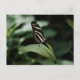 Une photo d'un papillon zèbre à aile longue équilibré sur une feuille de plante tout en appréciant le nectar sucré qu'il avait recueilli d'une fleur voisine.