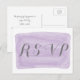Carte postale Mariage Aquarelle tendance et élégant avec un rectangle d'aquarelle brossé look arrière - plan violet. Cette carte postale RSVP élégante et moderne est facile à customiser avec vos détails mariages. Pour plus d'options de personnalisation, cliquez sur le bouton Customiser.