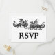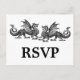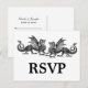 Parfait pour un mariage sophistiqué de jeu de table d'imaginaire à thème est cette Elegant Dragons Wedding RSVP Postcard avec une paire de dragons d'argent vibramment colorée. Facile à customiser, il suffit d'ajouter les détails de votre mariage dans les champs de texte fournis. Cliquez sur "Customiser" pour trouver d'autres options de personnalisation.