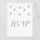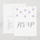 Carte postale Confetti Response, mignonne et tendance, avec des points de confetti amusants en violet et jaune. Cette carte RSVP simple et moderne peut être facilement customisée avec vos informations de mariage. Pour plus d'options de personnalisation, cliquez sur Customiser.