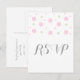 Carte postale Confetti Réponse mignonne et tendance avec des points de confetti amusants en rose et vert. Cette carte RSVP simple et moderne peut être facilement customisée avec vos informations de mariage. Pour plus d'options de personnalisation, cliquez sur Customiser.