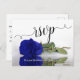 Carte Postale Réponse de Mariage Royale Bleue Élégante avec Rose